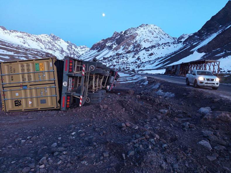 Un camión protagonizó un vuelco esta mañana en el paso internacional Cristo Redentor, que comunica Mendoza con Chile por la ruta 7, y el chofer sufrió politraumatismos, según informaron voceros. Pese al siniestro, el transito continúa habilitado en el corredor terrestre.